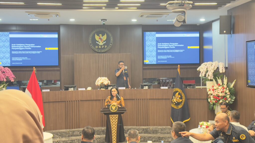 “Jadi anggota KPU, Bawaslu, dan DKPP terdiri dari 9 orang,” katanya dalam diskusi terbatas Penguatan Lembaga Kode Etik di Ruang Sidang DKPP, Jalan Abdul Muis, Jakarta Pusat, Selasa (23/12/2025).